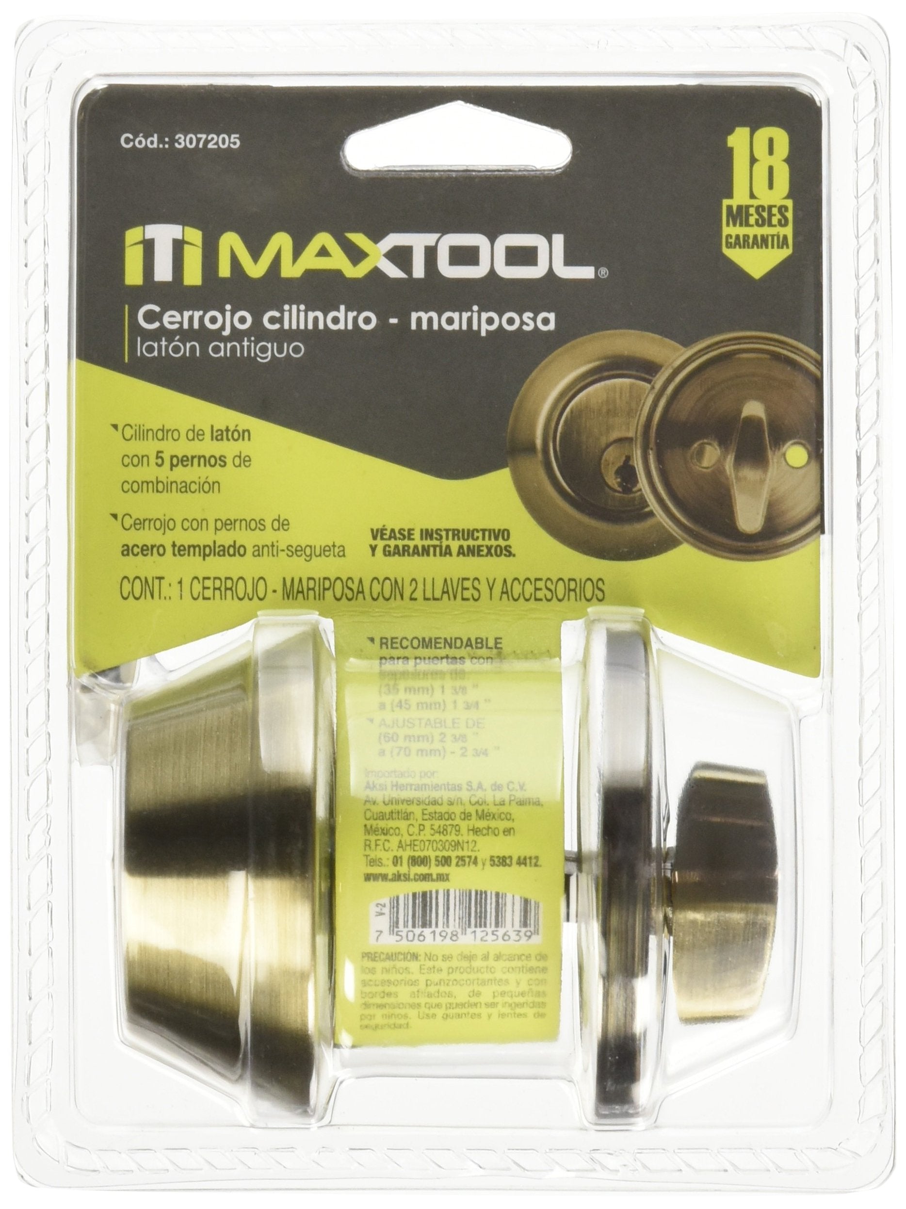 Cerrojo Maxtool Cilindro - Mariposa con 5 pernos de combinación de Latón Antiguo incluye 2 llaves