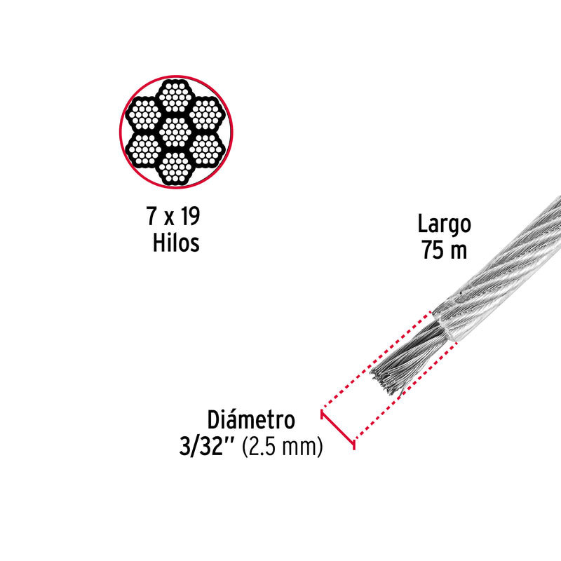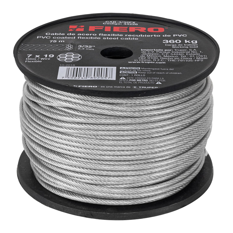 Fiero CAB-3/32FX, Metro cable flexible 3/32″ acero 7 x19 recubierto PVC