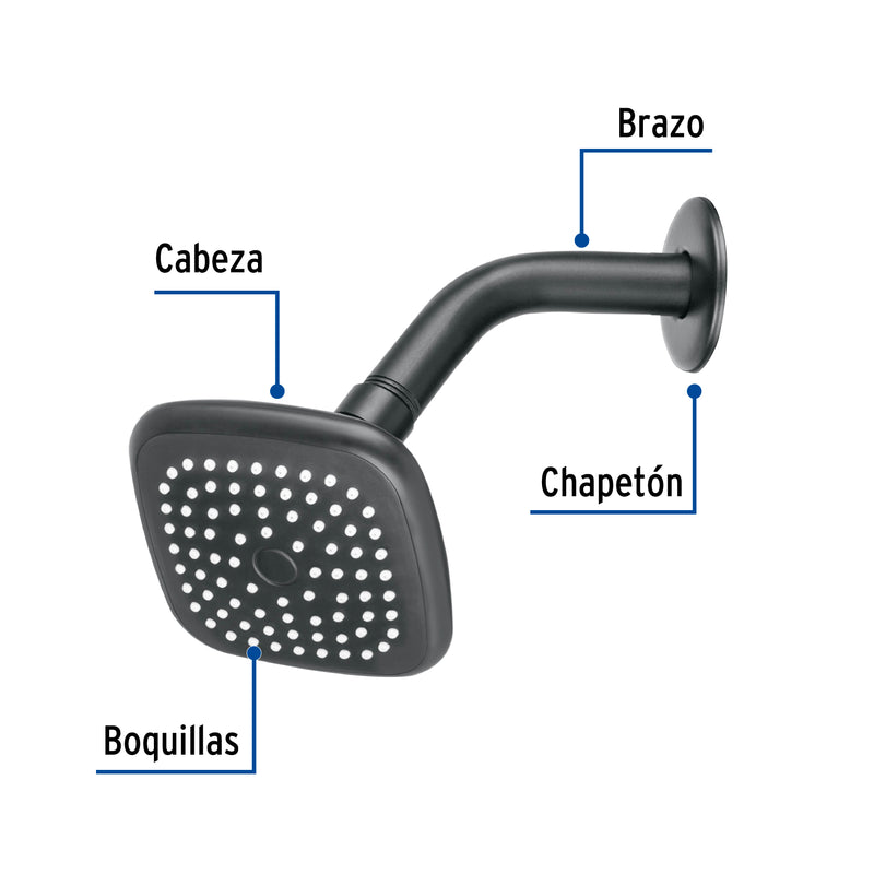 Foset Basic R-401M, Regadera cuadrada 3-3/4″ con brazo y chapetón color negro
