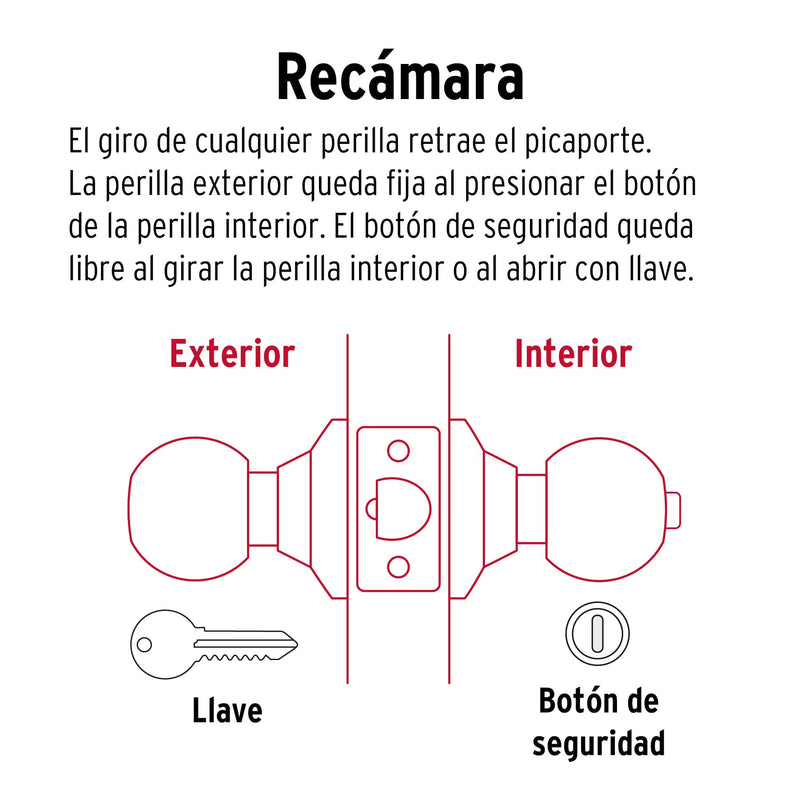 Hermex Basic BAL-CM-RP, Cerradura de pomo tipo esfera para recámara, mecanismo cilíndrico, cromo mate
