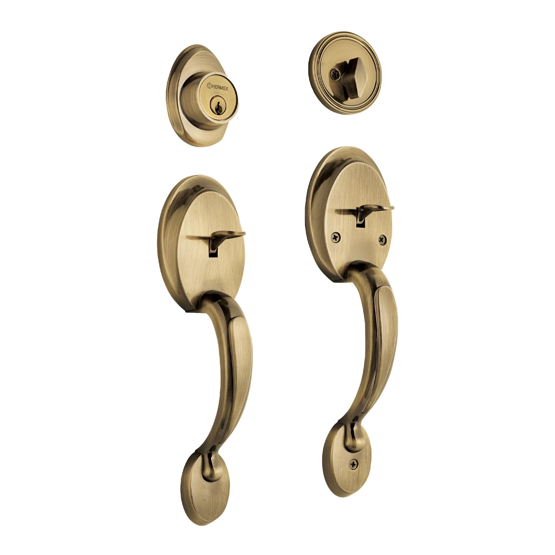 Hermex Basic CEP-21JJP, Doble jaladera, perilla y cerrojo mariposa color latón antiguo