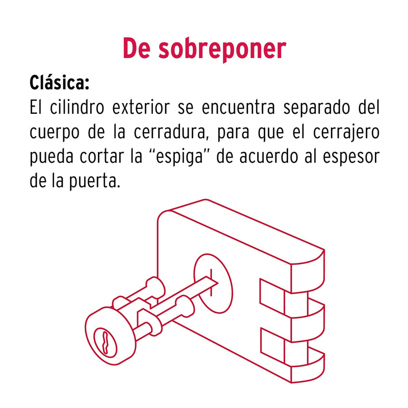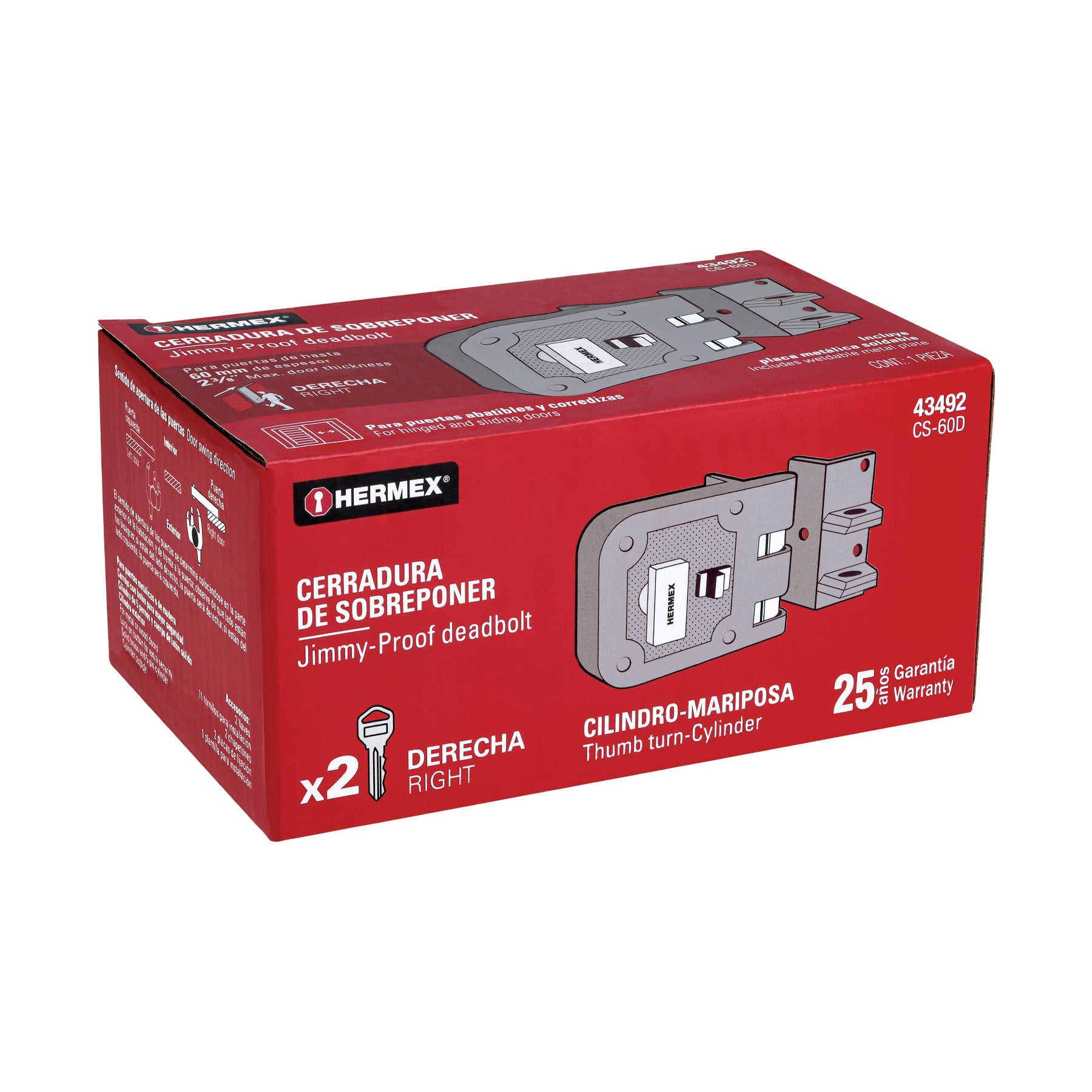 Hermex CS-60D, Cerradura de sobreponer para puertas corredizas (derecha), llave tradicional