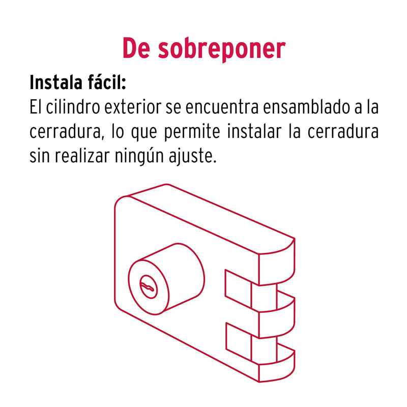 Hermex CS-95D, Cerradura sobreponer, puerta corrediza, instala-fácil, der.