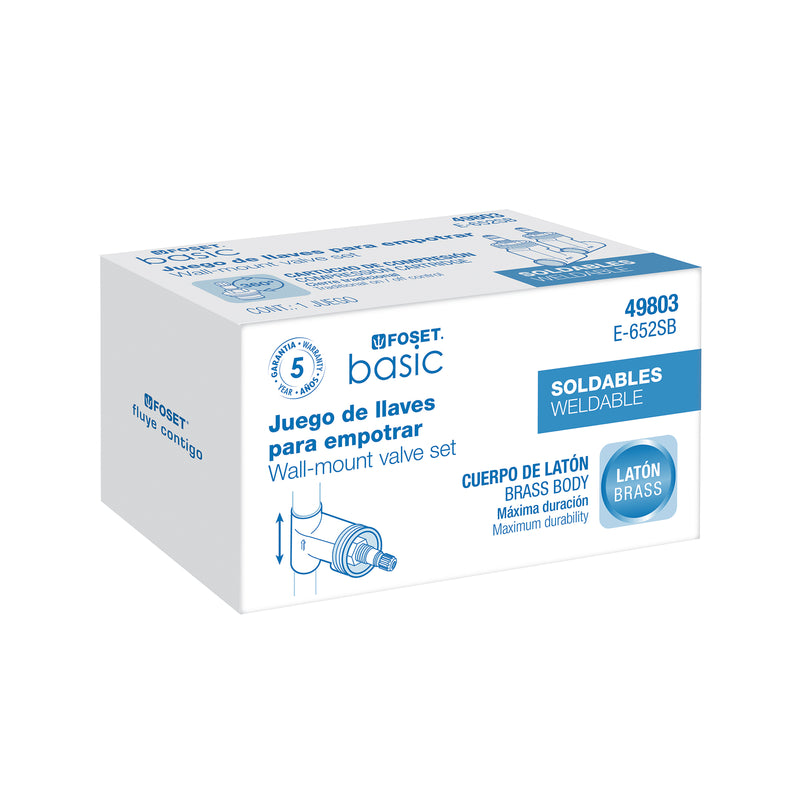 El juego de 2 llaves de empotrar soldables Basic Foset 49803 en acabado dorado ofrece una instalación segura y duradera para sistemas hidráulicos. Su diseño permite una conexión firme mediante soldadura, asegurando resistencia y práctica integración en muros. Ideal para profesionales que buscan calidad y funcionalidad en accesorios sanitarios con un elegante acabado que combina con diversos estilos de decoración.