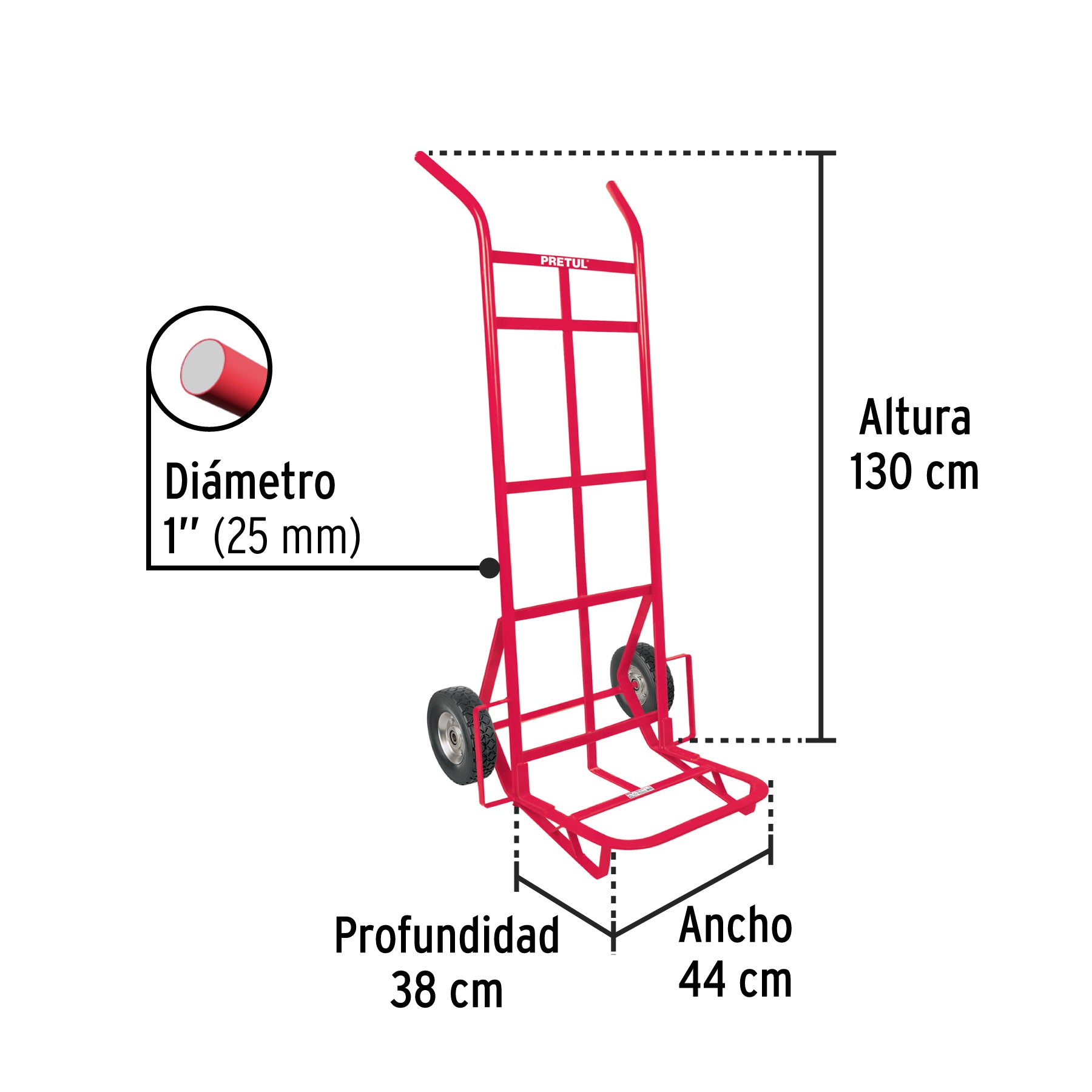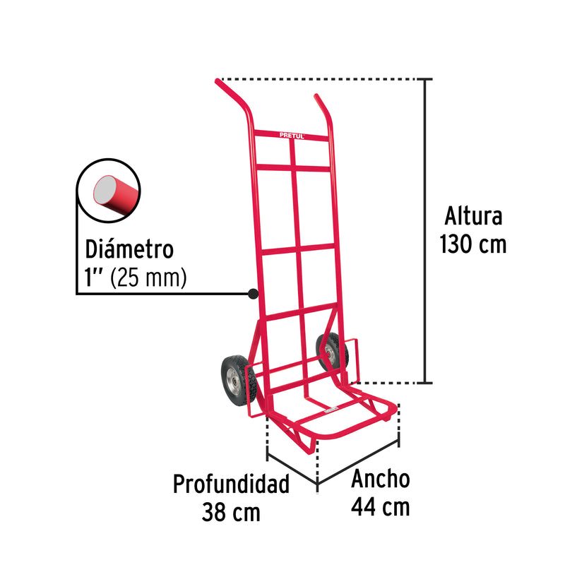 El Pretul DIA-300 es un diablo diseñado para facilitar el transporte de cargas pesadas de hasta 300 kg. Equipado con ruedas sólidas y doble balero, ofrece una maniobrabilidad superior y durabilidad incluso en terrenos irregulares. Su construcción robusta garantiza seguridad y eficiencia en el manejo de materiales, ideal para uso industrial o comercial.