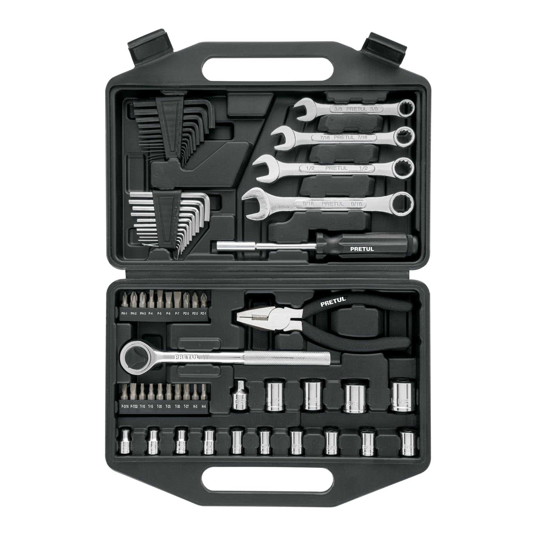 El Pretul SET-70 es un juego de herramientas profesional que incluye 66 piezas diseñadas para cubrir una amplia variedad de reparaciones y proyectos. Cada herramienta está fabricada con materiales duraderos que garantizan resistencia y precisión, facilitando trabajos eficientes y seguros. Este set es ideal para profesionales y aficionados que buscan calidad y versatilidad en un solo paquete compacto.