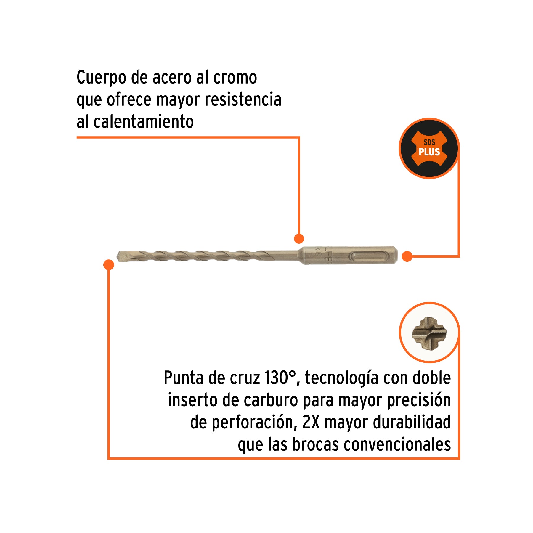 Truper BS-1/4X6, Broca SDS Plus, Cuerpo de acero al cromo, 1/4 x 6″