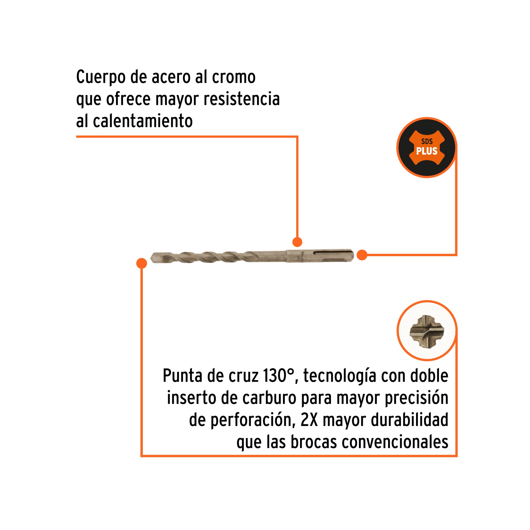 Truper BS-3/8X6, Broca para concreto con sistema directo de inserción (SDS Plus) 3/8″ x 6″