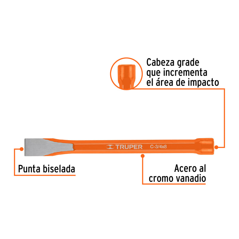Truper C-3/4X8, Cincel de corte frío, acero al cromo vanadio, 3/4 X 8″