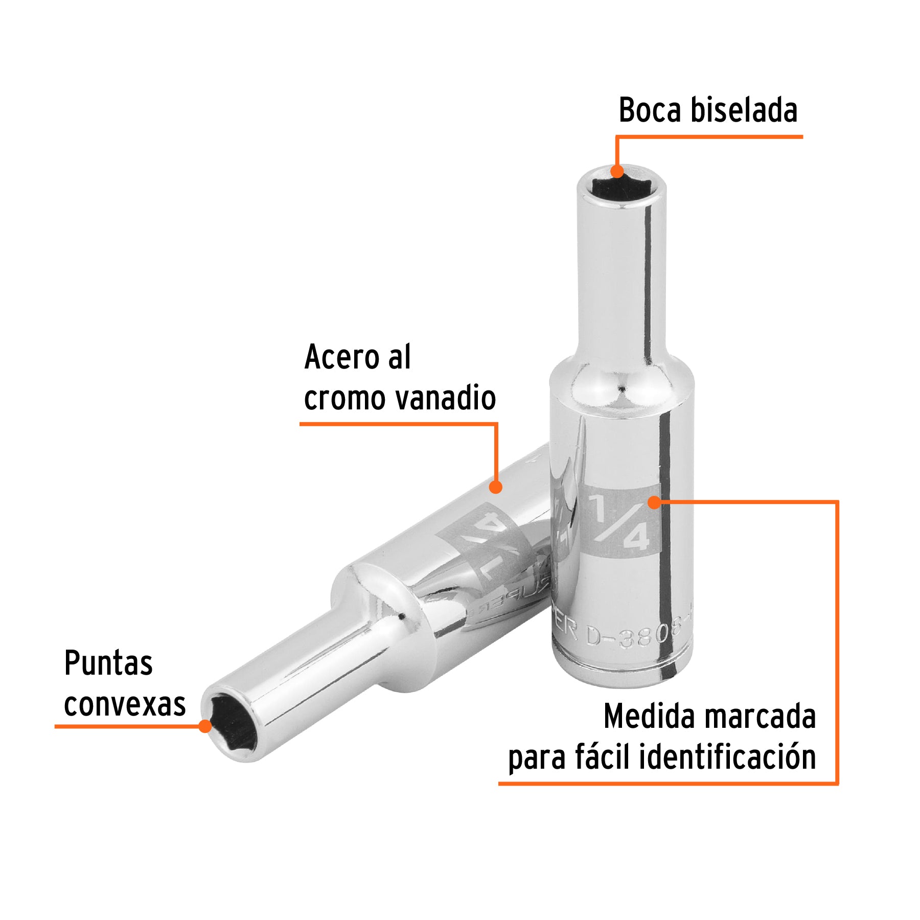 Truper D-3808-HL, Dado largo de 1/4″, 6 puntas, cuadro 3/8″