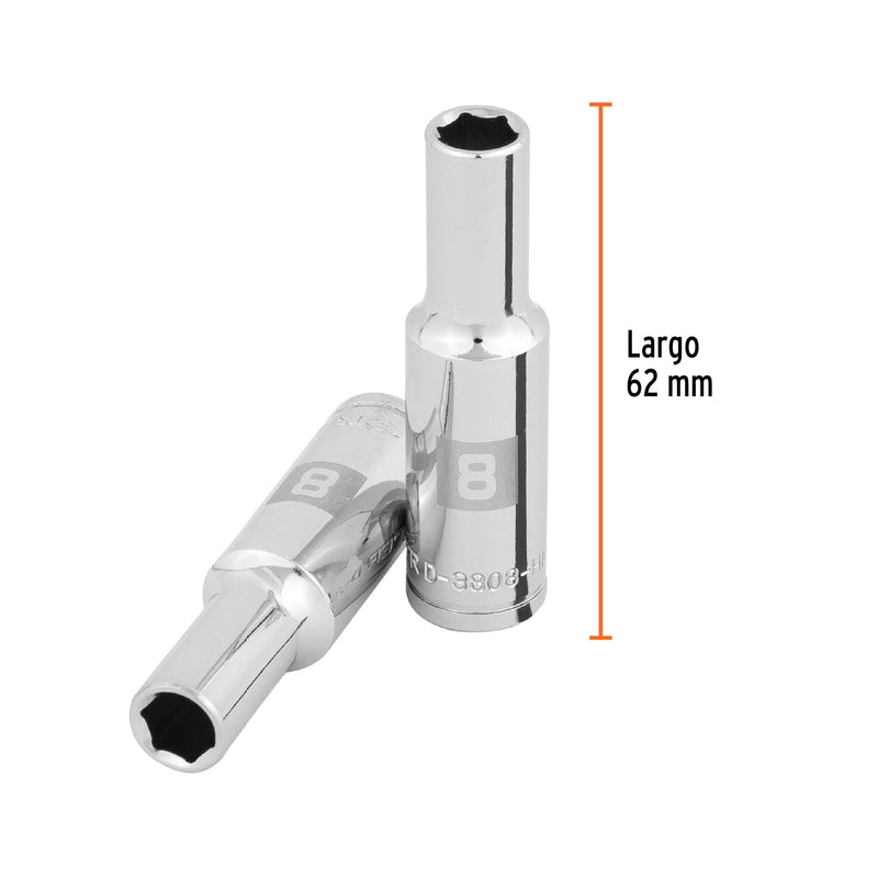 Truper D-3808-HM-L, Dado largo de 8 mm, 6 puntas, cuadro 3/8″