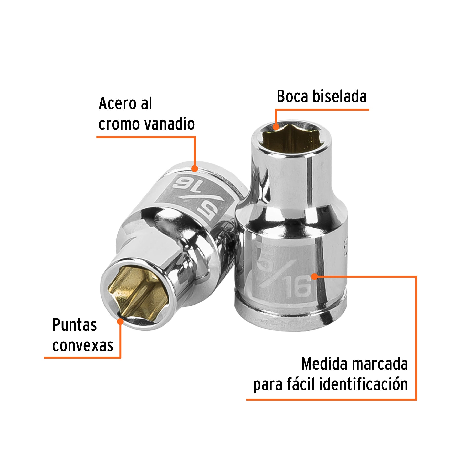 Truper D-3810-H, Dado de 6 puntas std, 5/16″, cuadro 3/8″