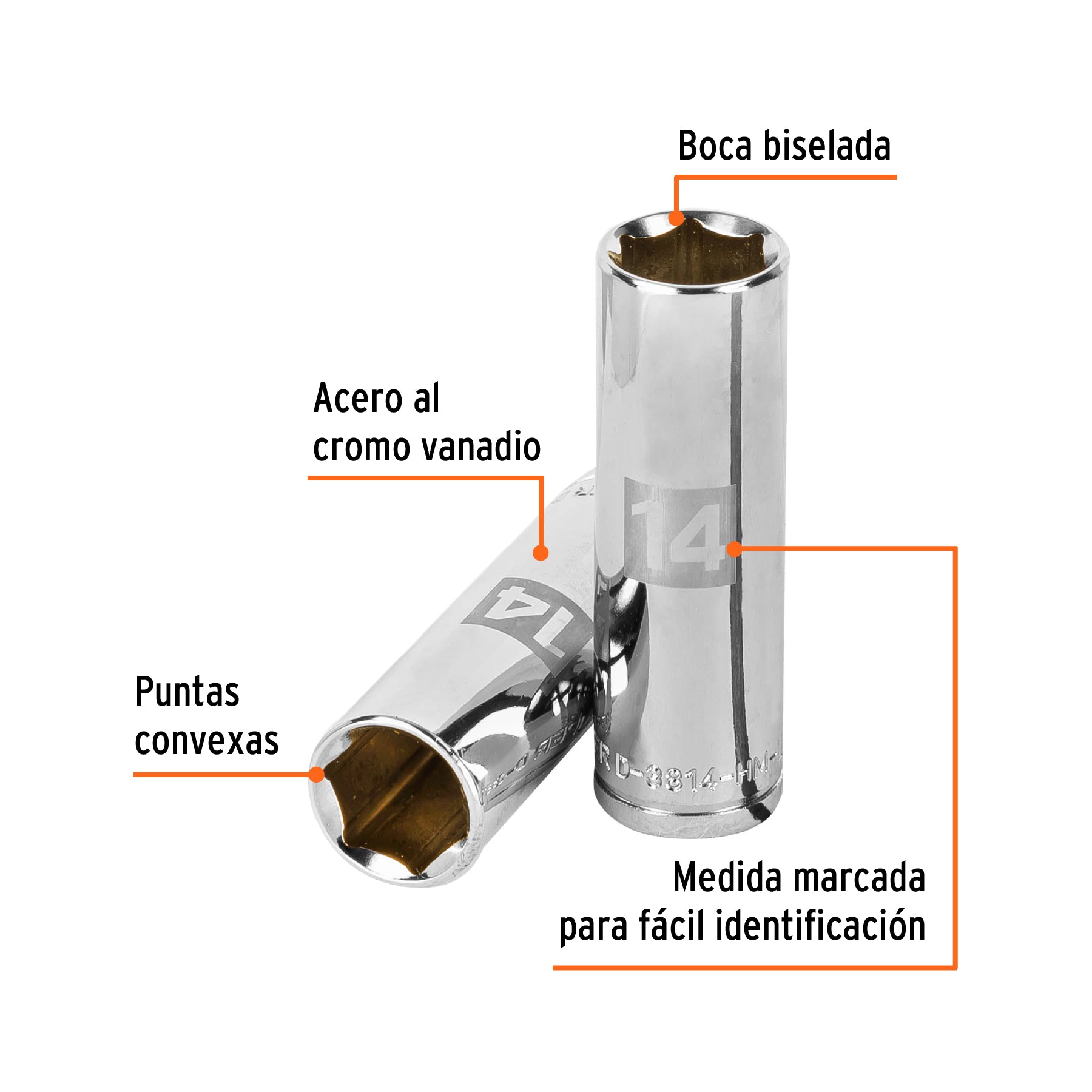 Truper D-3814-HM-L, Dado largo de 6 puntas mm, 14 mm, cuadro 3/8″