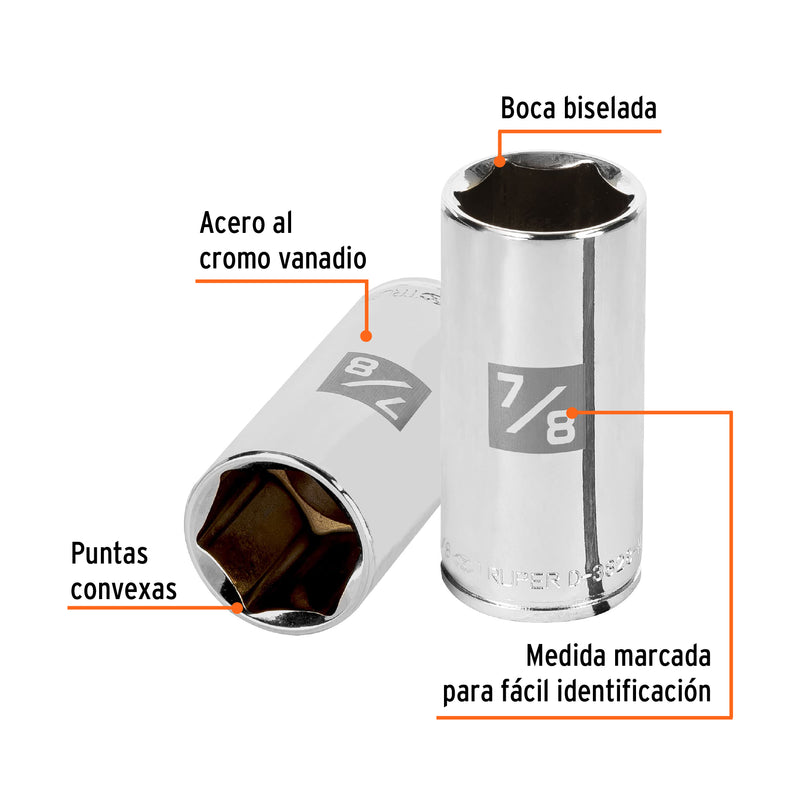 Truper D-3828-HL, Dado largo de 6 puntas std, 7/8″, cuadro 3/8″