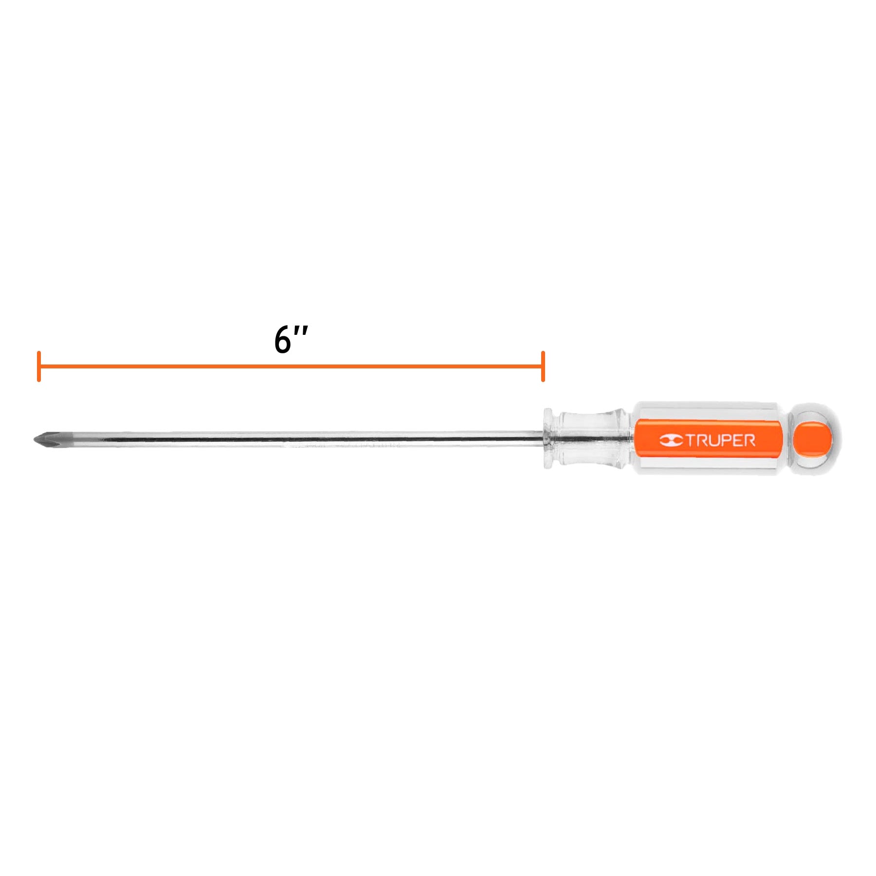 Truper DP-3/16X6, Desarmador de cruz, mango de acetato, 3/16″ x 6″
