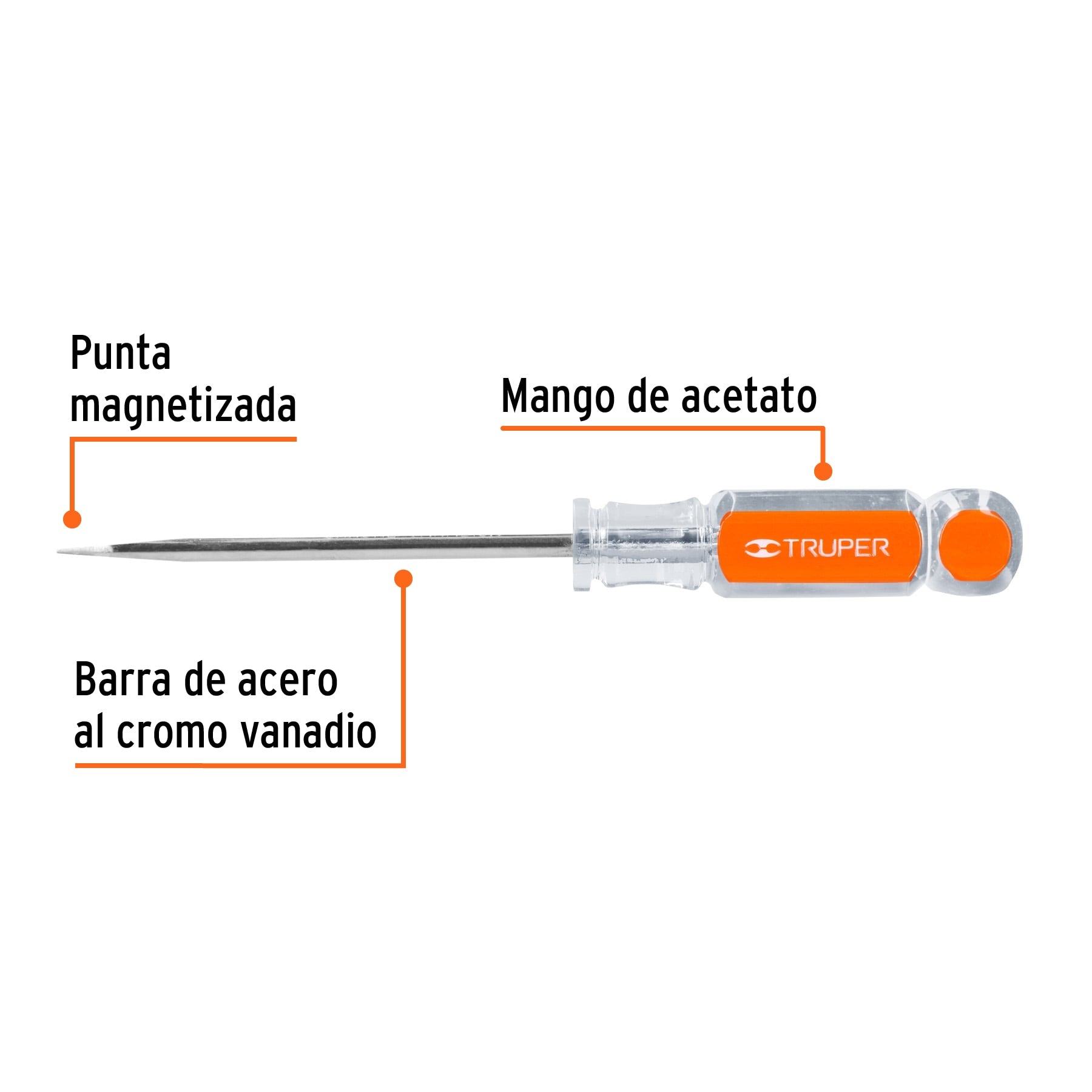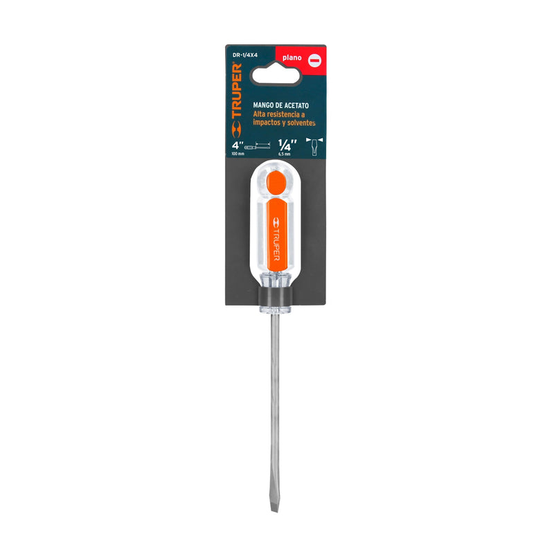 Truper DR-1/4X4, Desarmador plano, mango de acetato, 1/4″ x 4″
