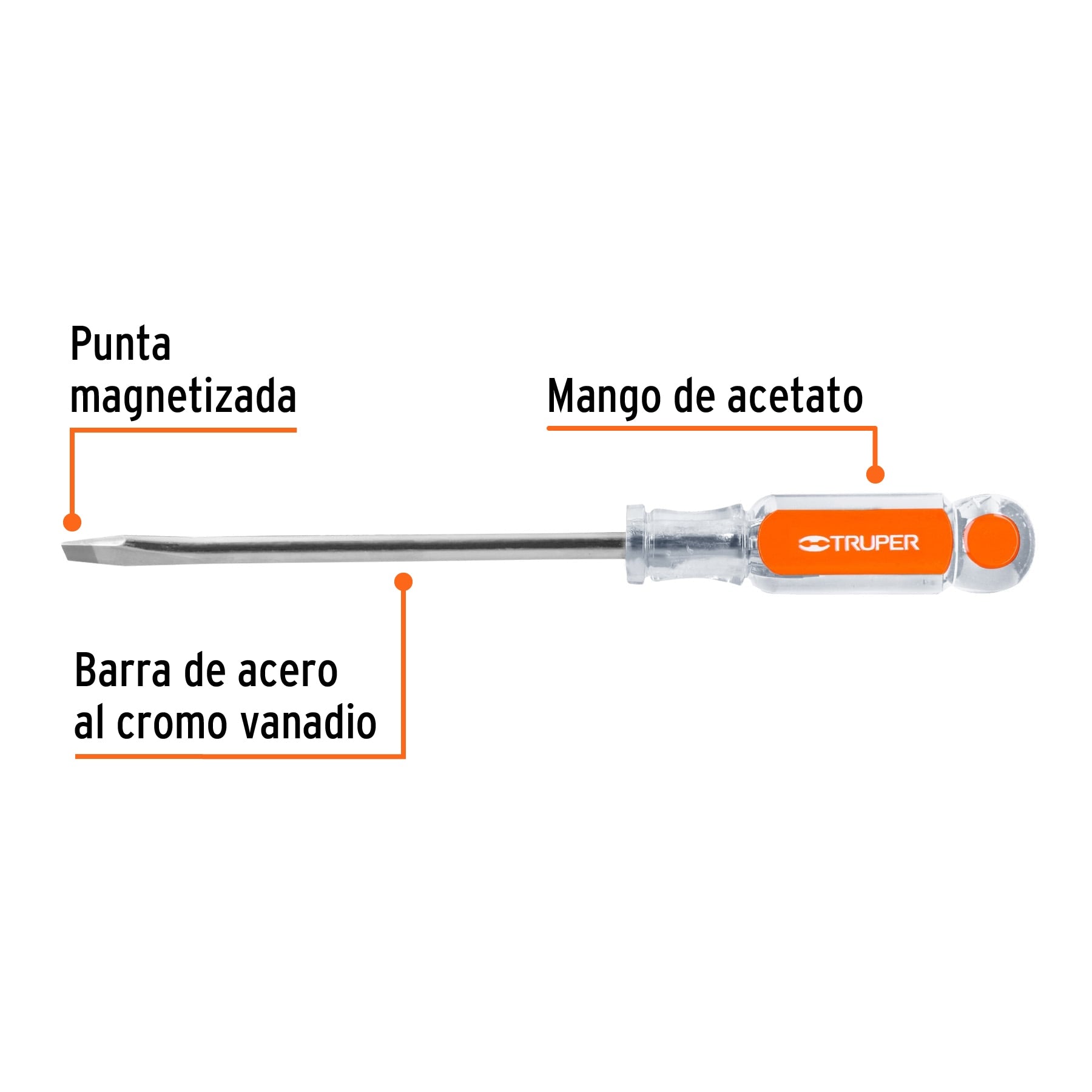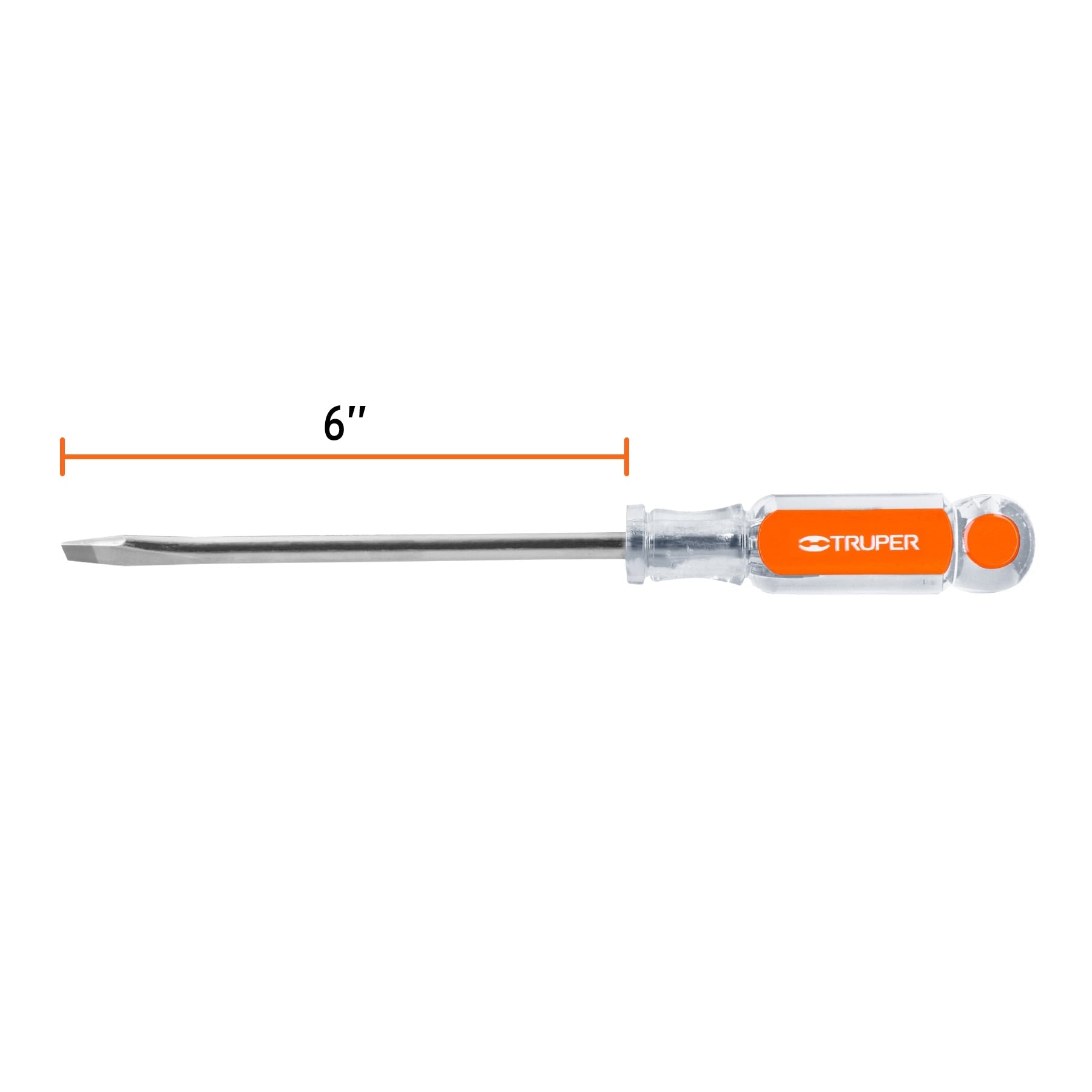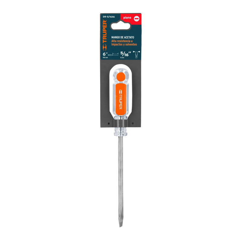 Truper DR-5/16X6, Desarmador plano, mango de acetato, 5/16″ x 6″