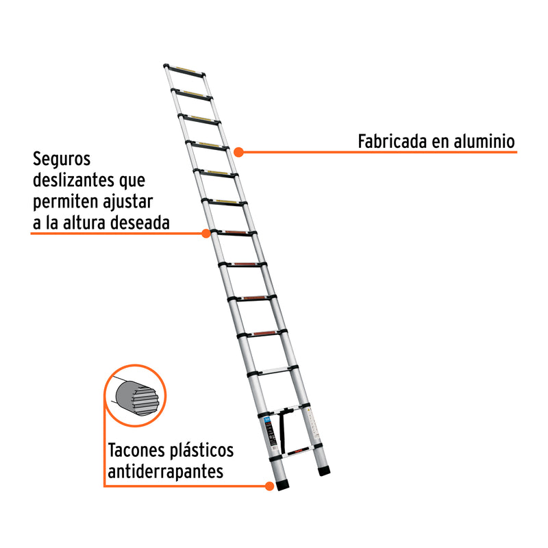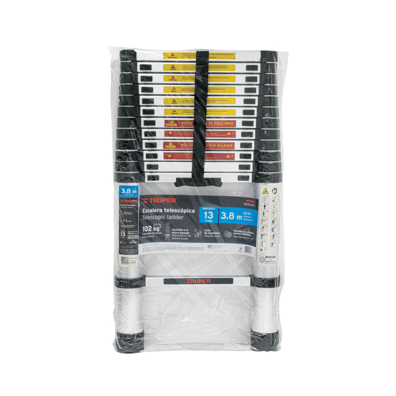 Truper ESTE-213 Escalera telescópica,13 peldaños, Tipo II, Capacidad 102kg