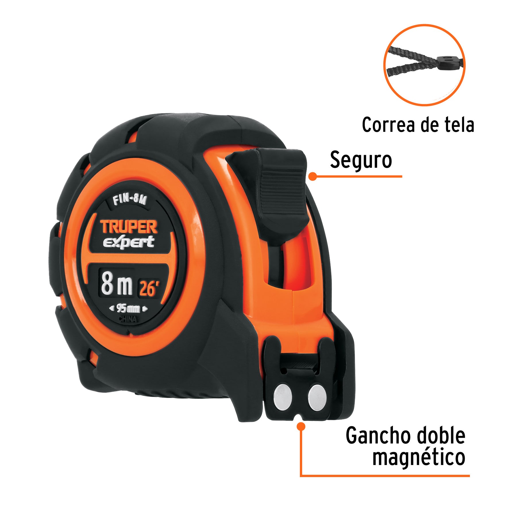 Truper Expert FIN-8M, Flexómetro industrial contra impactos 8 m cinta 25 mm