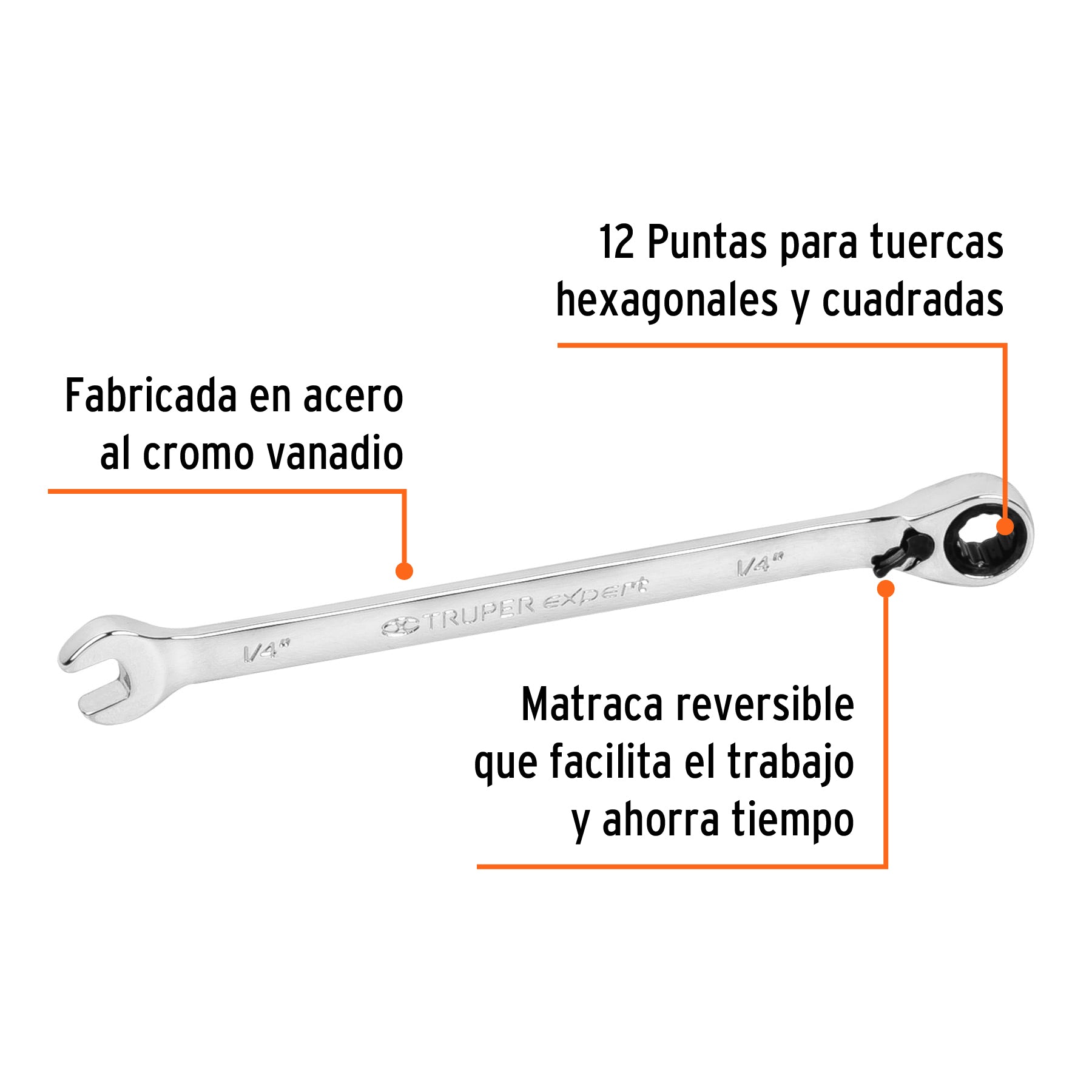 Truper Expert LL-2008XR, Llave combinada matraca reversible 1/4″ x 125 mm largo