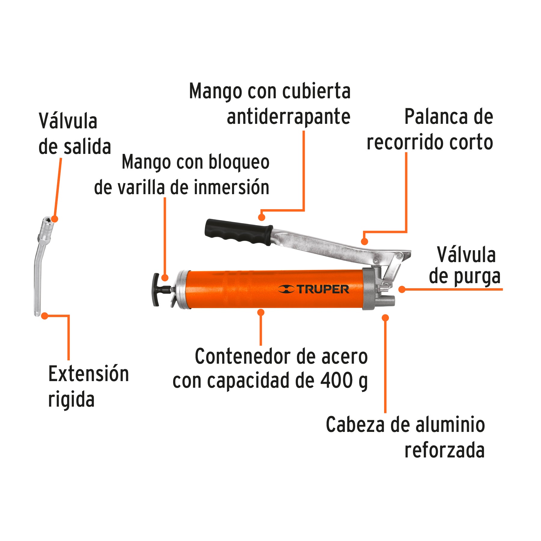 Truper GRAS-14, Grasera industrial, 14 oz, 8,000 PSI
