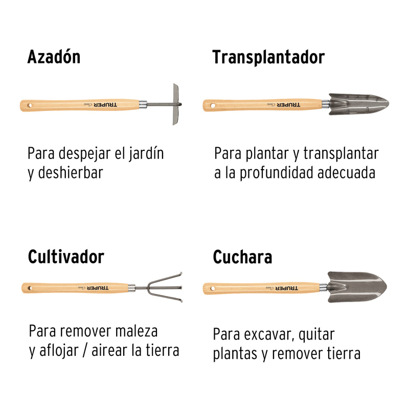 Truper JJ-4L, Juego de 4 herramientas para jardín, 15″