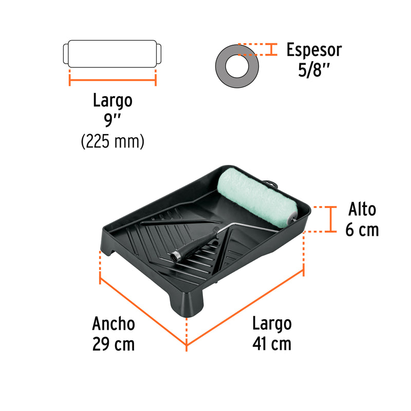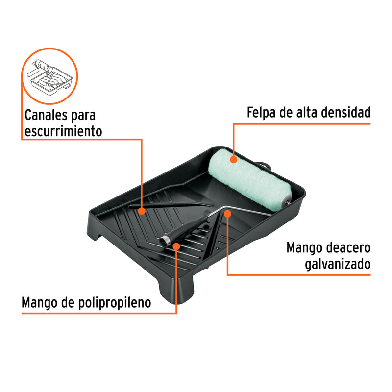 Truper KIT-ROPI-915, Kit de Rodillo para Pintar, 9″ (maneral, charola y Felpa)