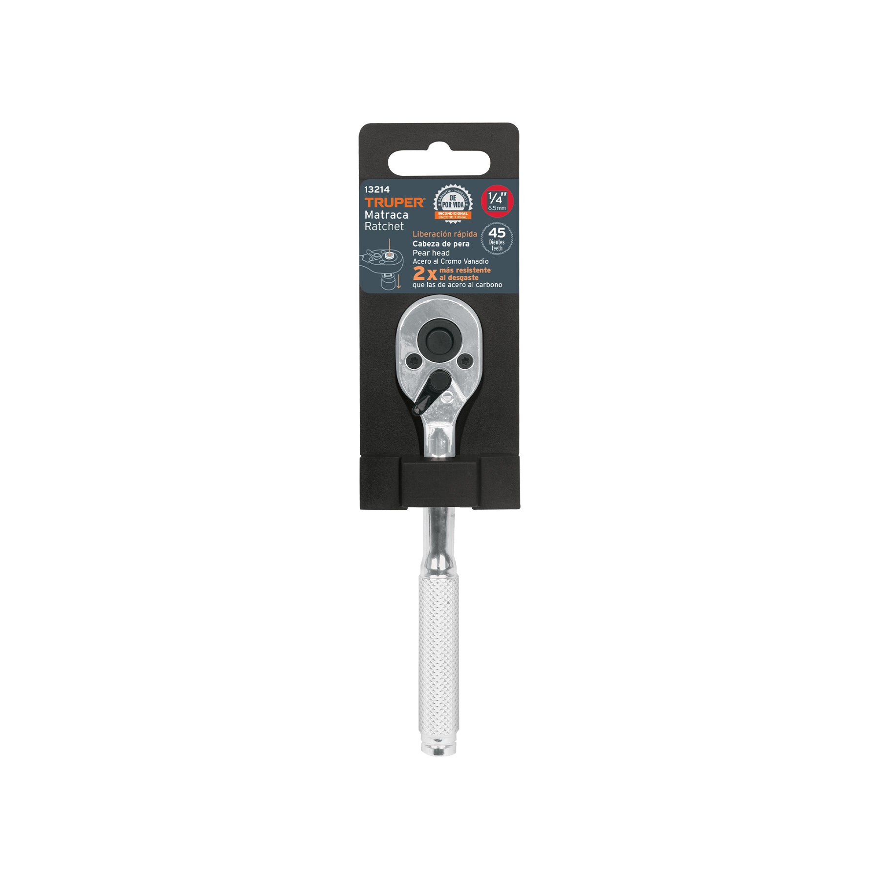 Truper M-1449-N, Matraca liberación rápida, cabeza de pera, cuadro 1/4″
