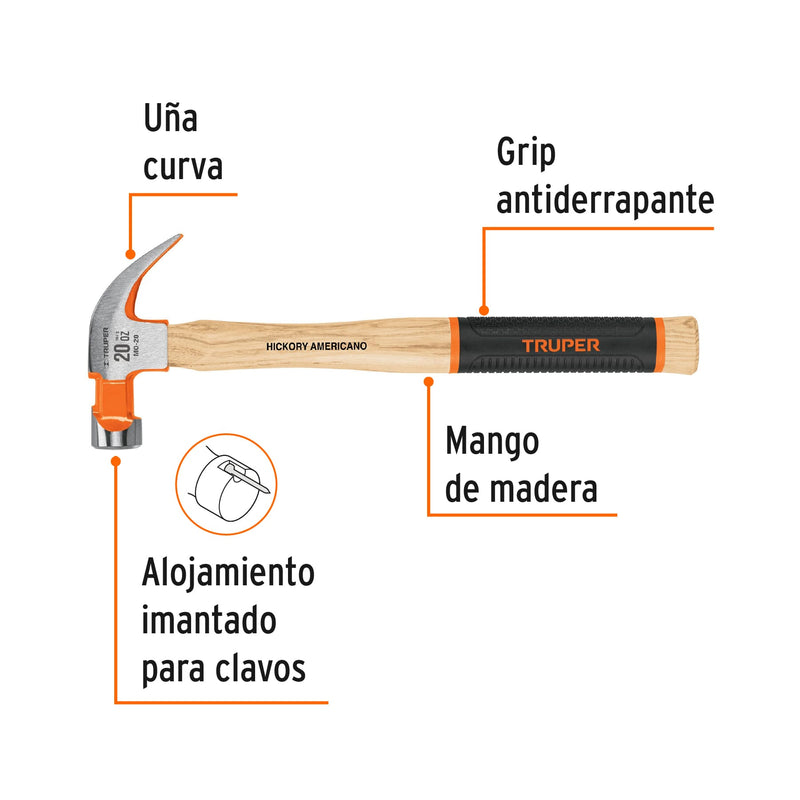 Truper MO-20, Martillo pulido de uña curva, 20 oz