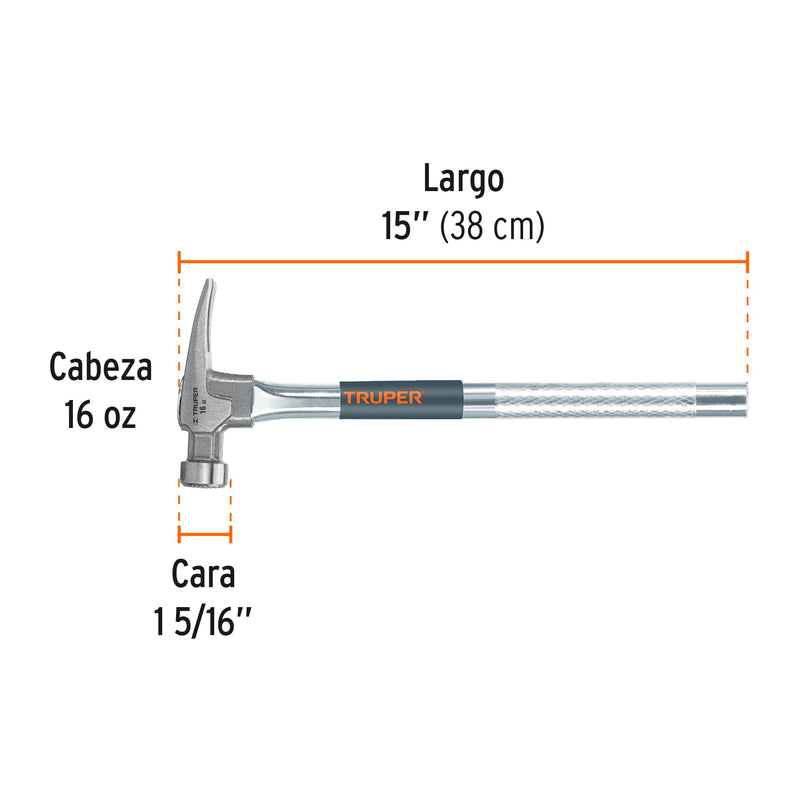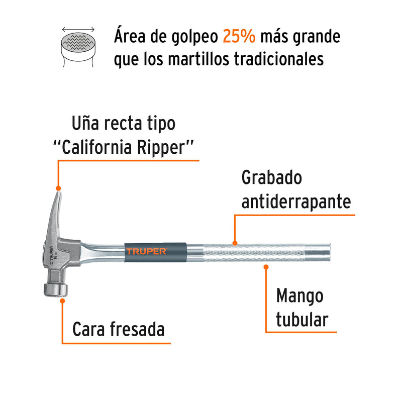 Truper MORCA-16T, Martillo California Ripper, boca fresada, 16 oz, con mango