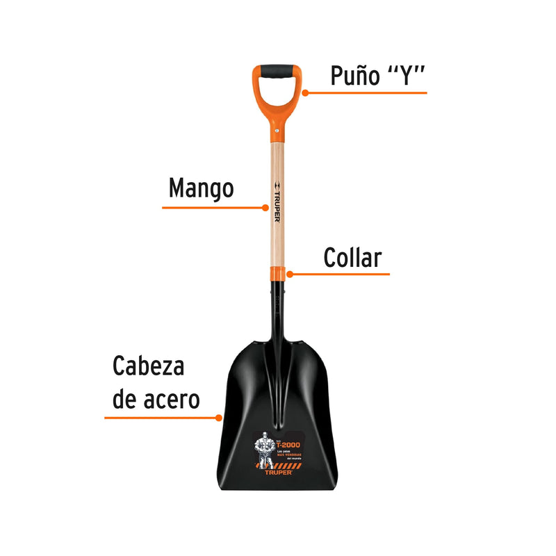 Truper PCACY-P, Pala carbonera, puño ″Y″, modelo T-2000, cabeza 20 3/4″