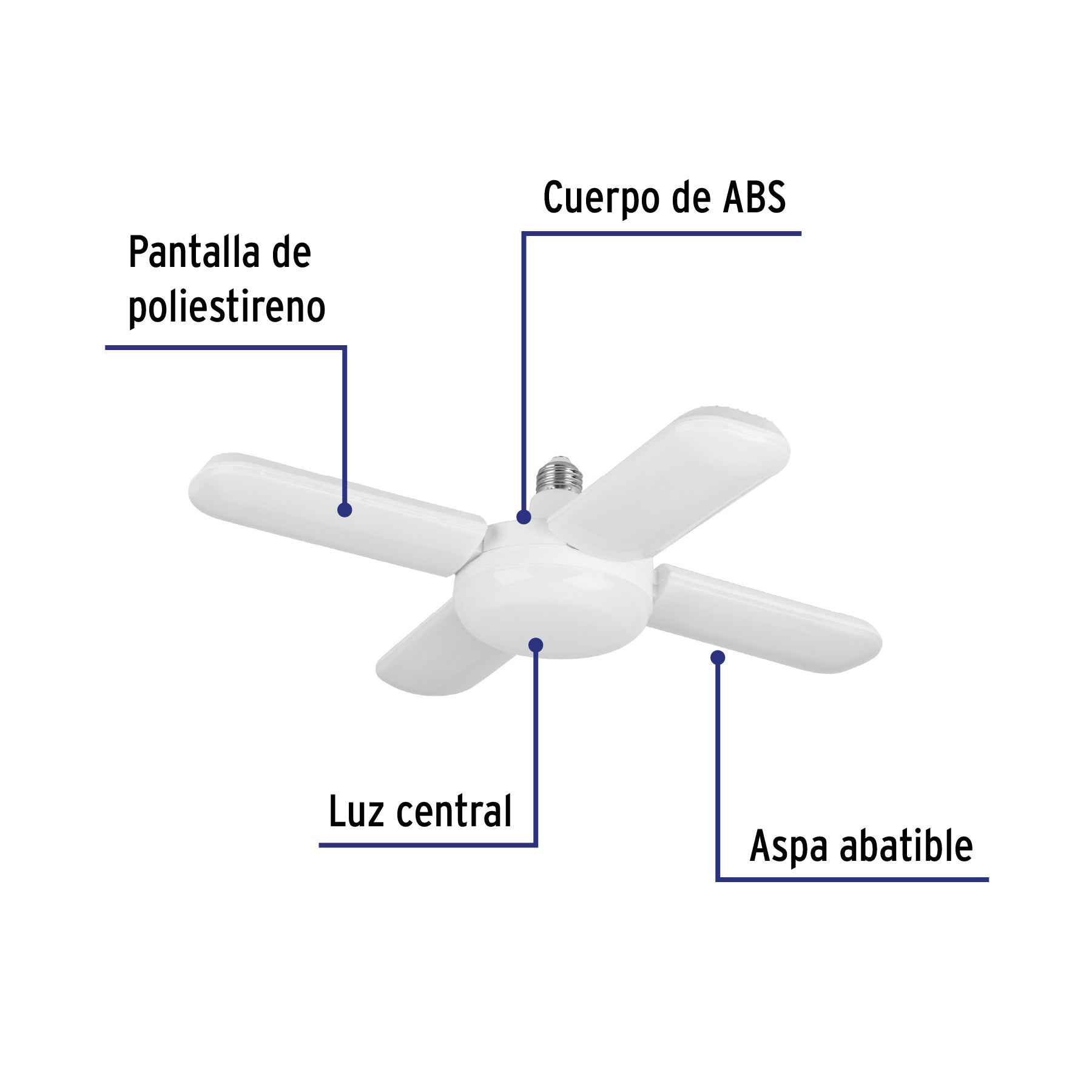 Volteck Basic LED-450V, Lámpara LED 40W tipo ventilador, 4 aspas ajustables